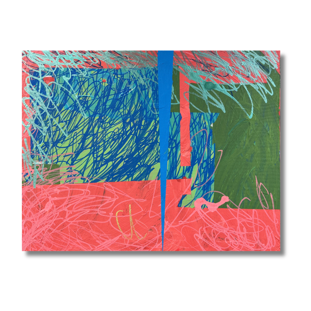 Clay paints with enthusiasm and delight, most often in shades of blue. He prefers working on the largest canvas available and while standing to implement full-body brushstrokes of watery-blue overlapping with expression.