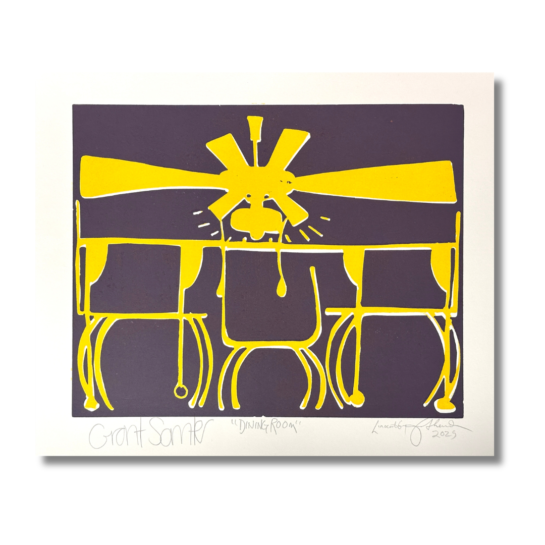 Grant is an artist and illustrator. He works quickly in a style dependent upon stark lines and colors, similar to the artist Keith Haring. As with the Pop Art of the 60s, his preferred subjects include fruits and vegetables, household items, soda machines, and his favorite restaurant, Chili’s.
