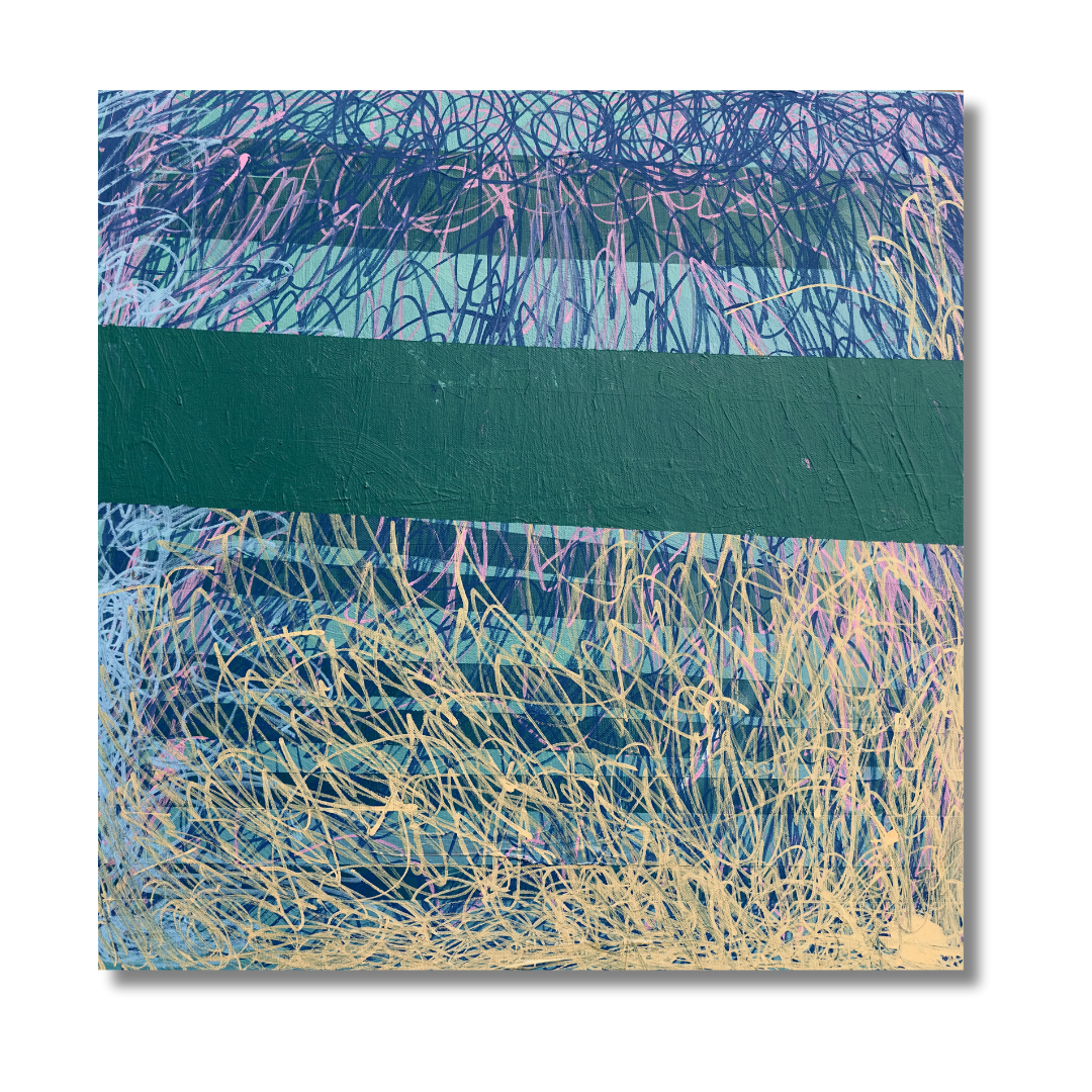 Clay paints with enthusiasm and delight, most often in shades of blue. He prefers working on the largest canvas available and while standing to implement full-body brushstrokes of watery-blue overlapping with expression.
