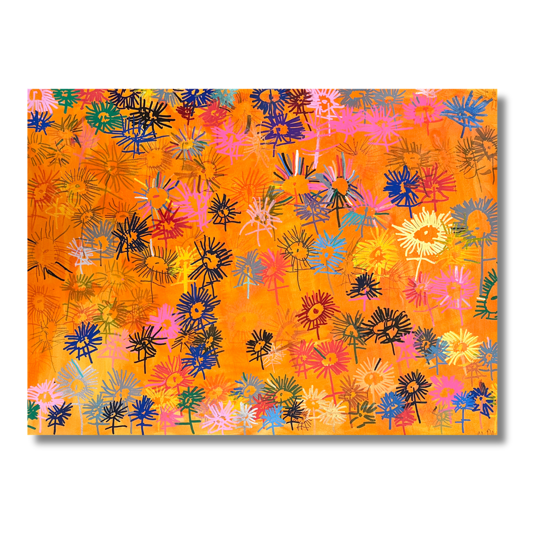 Mary Margaret’s floral designs have spindly petals and vibrant centers, emanating warmth and light. They demonstrate her love of others, particularly her sisters.